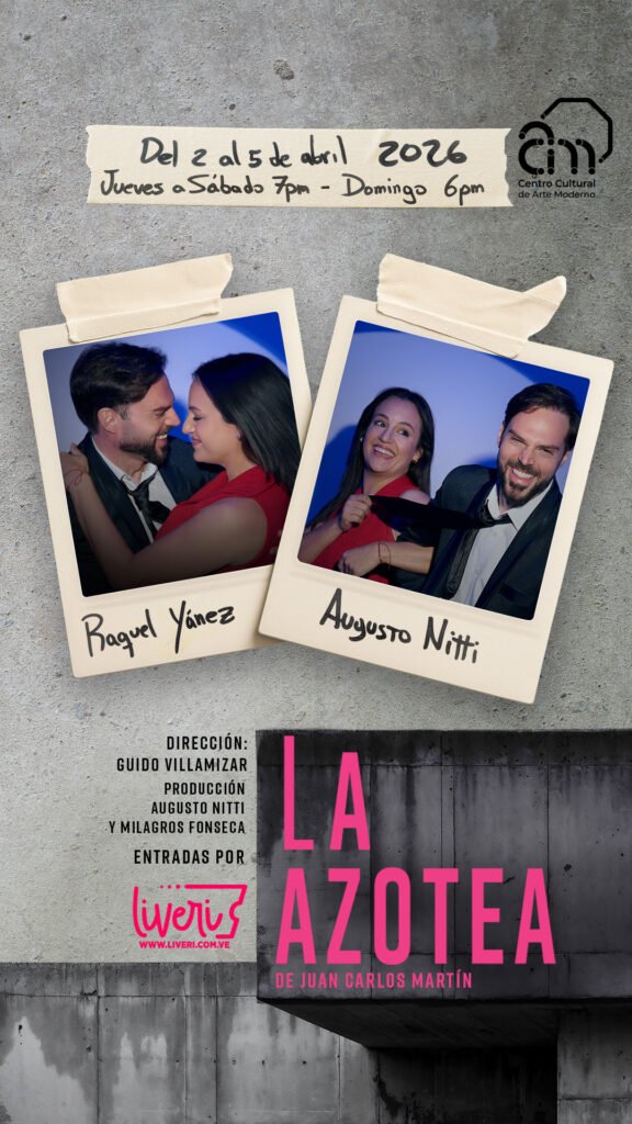 Vuelve al Centro Cultural de Arte Moderno CCAM la exitosa comedia romántica La Azotea, protagonizada por los talentosos Raquel Yánez y Augusto Nitti. Este es un viaje hacia las segundas oportunidades lleno de humor y emociones variopintas que te atrapará desde el primer minuto. ¿Qué pasa cuando dos extraños coinciden en la cornisa de un edificio en Bello Monte, ambos a punto de saltar al vacío? Así comienza esta historia en la que la oscuridad de Ángel choca de frente con la misteriosa y arrolladora energía de Susi. Lo que parecía ser el final, se convierte en un carrusel de emociones, risas y confesiones. ¿Lograrán salvarse mutuamente? ¿Qué les depara este cruce en las alturas? ¡Cinco únicas funciones!