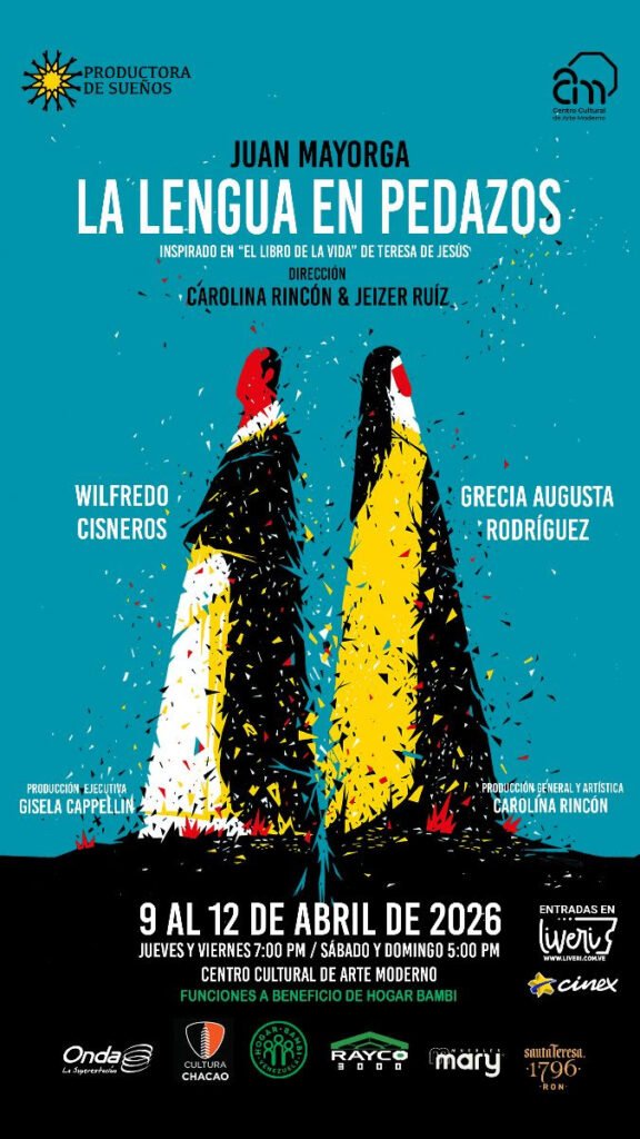 El texto del dramaturgo vivo más representado en el mundo, Juan Mayorga, Premio Princesa de Asturias, aterriza en nuestras tablas. La Lengua en Pedazos es un duelo vibrante entre la fe y el poder, entre Teresa de Jesús y el Inquisidor. Grecia Augusta Rodríguez es Teresa de Jesús y Wilfredo Cisneros es el Inquisidor. Una experiencia teatral punzante bajo la dirección de Carolina Rincón y Jeizer Ruiz. Una batalla de palabras que no te dejará indiferente.