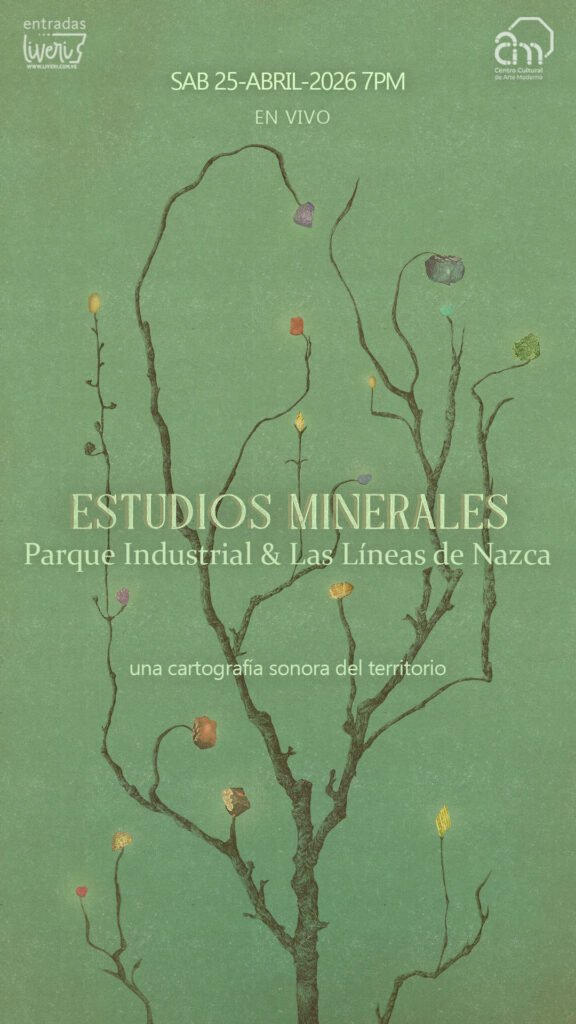 El Centro Cultural de Arte Moderno CCAM presenta un diálogo entre dos propuestas unidas por la exploración de la geografía y el relieve. Las agrupaciones musicales Las Líneas de Nazca y Parque Industrial nos invitan a una escucha profunda, entendiendo la música como una forma de permanencia, a través del concierto Estudios de los minerales. Acompáñanos en una velada en la que lo sagrado y lo terrenal convergen en nuestra sala de conciertos. ¡Una propuesta imperdible!