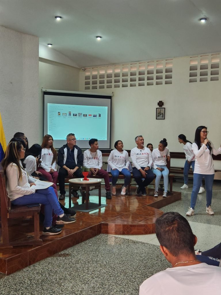 Los 63 estudiantes que participan en “Aula In Tech” están realizando un diagnóstico de la situación de acceso a la salud de la comunidad teniendo como nodo de acción los ocho programas sociales de la Sociedad del Divino Salvador, que tiene a su cargo cuatro unidades educativas, un centro de salud, un proyecto de formación en arte y deporte y dos casas hogar que en total agrupan a más de seis beneficiarios, solo en Catia.
