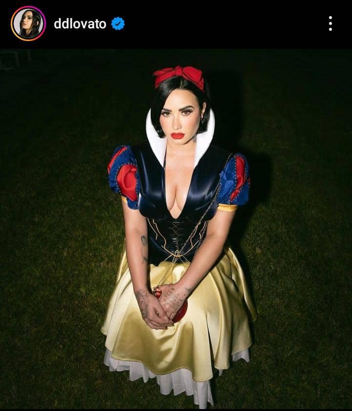 Por su parte, Demi Lovato optó por lucir como una princesa y se disfrazó de Blancanieves. Con un vestido azul y amarillo, complementado con una lazo rojo, logró encarnar a la famosa princesa de los cuentos de hadas.