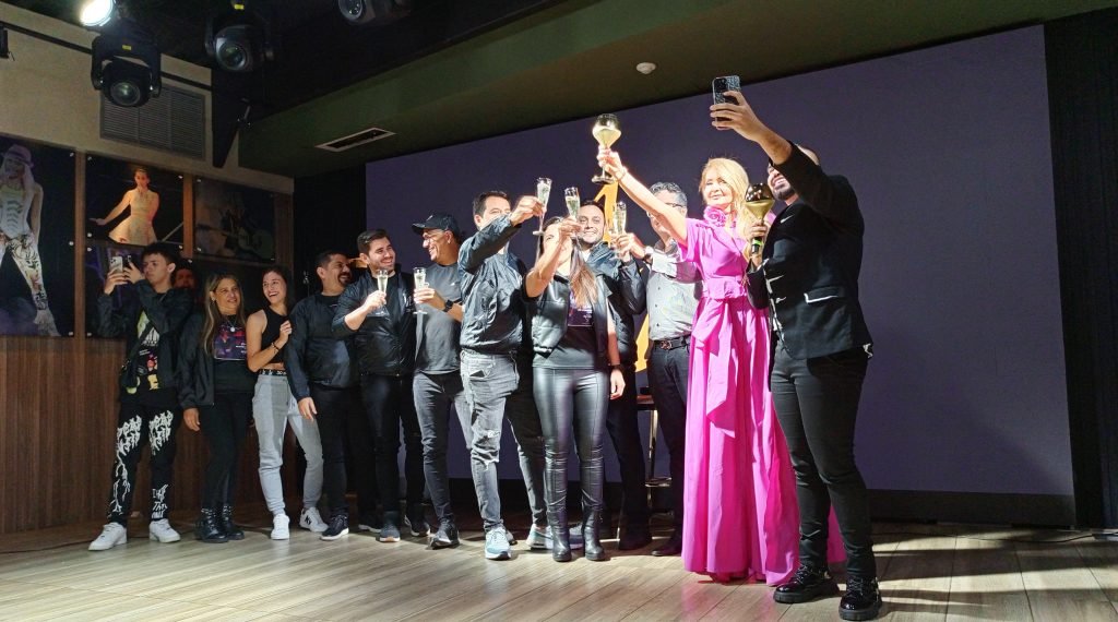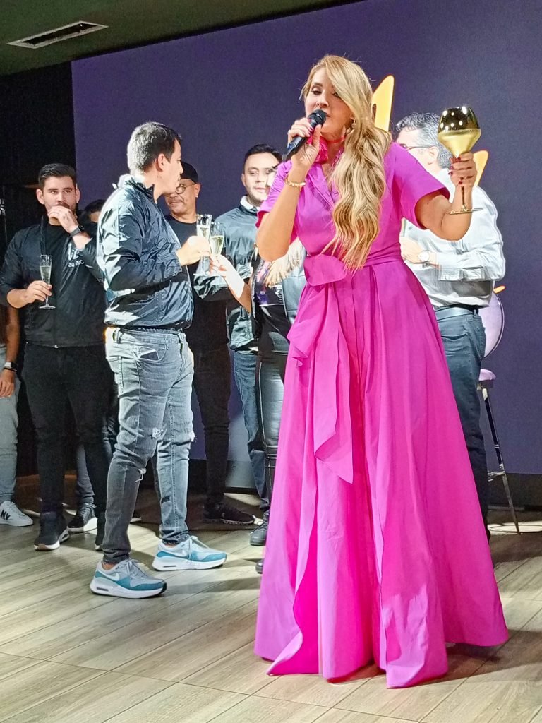 En este encuentro ofreció una pequeña muestra de lo que será su tour, donde puso a todos a bailar. Además, hizo un brindis con su equipo de trabajo y los presentes para celebrar los 30 años de carrera artística.