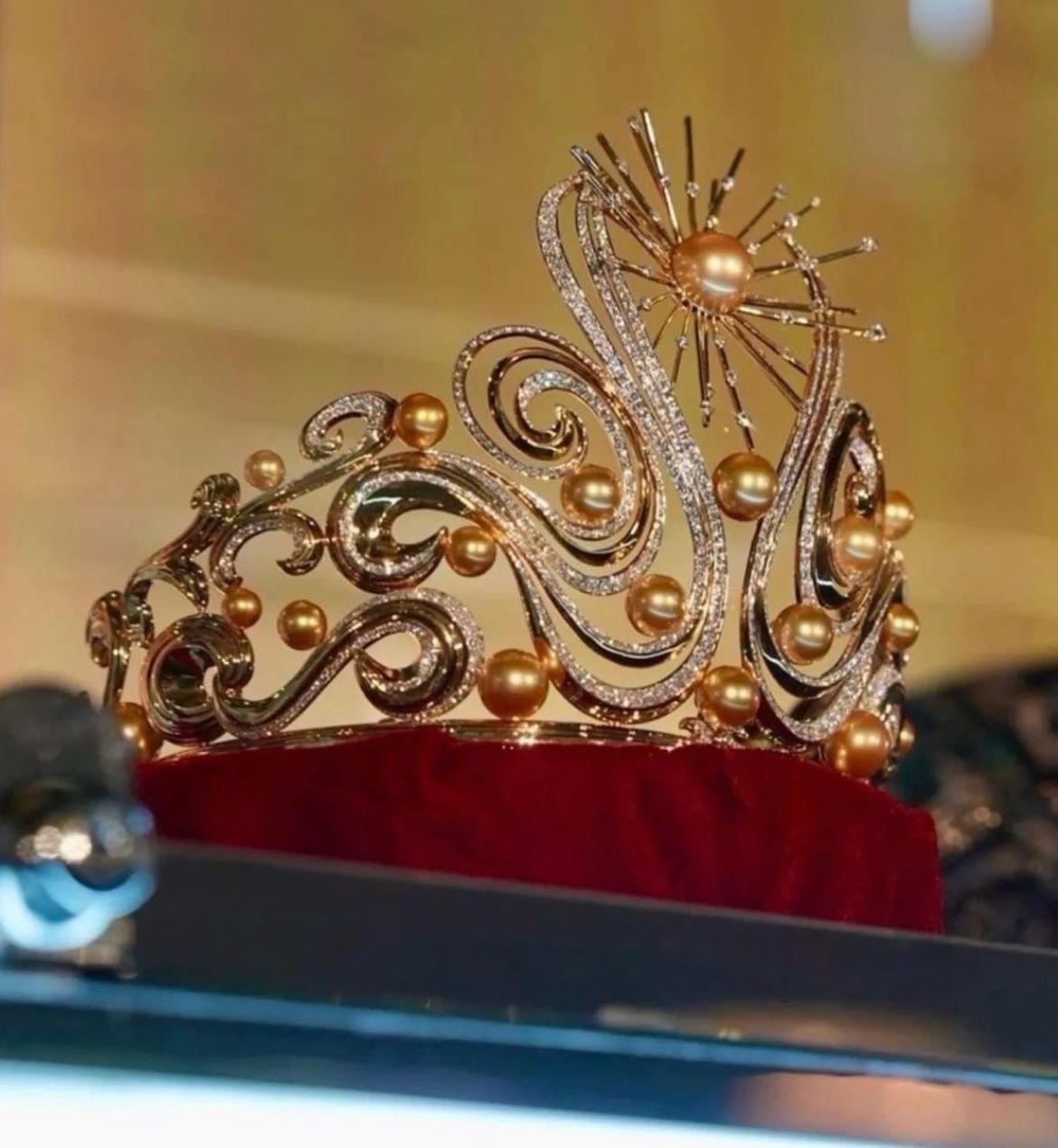 La organización de Miss Universo presentó este miércoles, 13 de noviembre de 2024, la deslumbrante corona Lumiere De L’Infini (Luz del Infinito), que será lucida por la ganadora de la septuagésima tercera edición del certamen, que se lleva a cabo en la Ciudad de México. Esta majestuosa pieza, elaborada por la joyería filipina Jewelmer, destaca por su elaboración en oro, diamantes y 23 perlas doradas, coronadas por una imponente perla dorada en el centro.