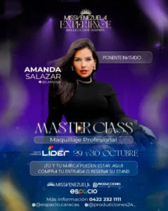 Por su parte, para Ana Gabriela Lugo, Directora de Cuentas de Producciones 24, este evento busca traer “ese punto de la belleza, ese glamour y esa ‘belleza que inspira’, a un poquito más cerca de ustedes, un poquito más a nosotros, para aprender esos tips, eso que podemos agregar a nuestro día a día, porque eso solo no queda en pasarela; todo lo que ocurre en pasarela podemos implementarlo a nuestro día a día, para una mejor caminata, una mejor postura, saber cómo hablar, saber cómo mostrarse”. Asimismo, continuó asegurando que esos mismos conocimientos sobre maquillaje, estilismo, fotografía, cabello y colorimetría son aprendizajes que vas a adquirir en dos días por solo 60 dólares, donde el público podrá aprender de la mano de Producciones 24, Espacio Caracas, Miss Venezuela y Miss Venezuela Experience.