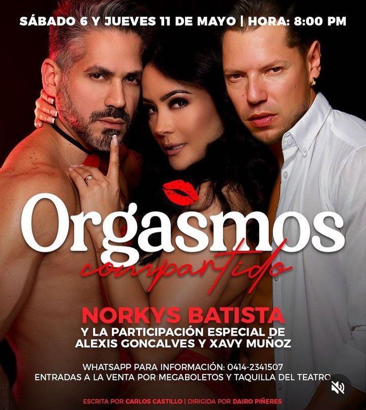 La actriz y modelo venezolana, Norkys Batista llega con su exitosa obra «Orgasmos» pero esta vez se subirá a las tablas venezolanas muy bien acompañada, y es que su esposo, Alexis Goncalves y Xavy Muñóz, quien ha hecho dupla con Norkys durante las últimas temporadas de esta pieza teatral, se suman juntos a esta novedosa propuesta que han denominado «Orgasmos Compartido».