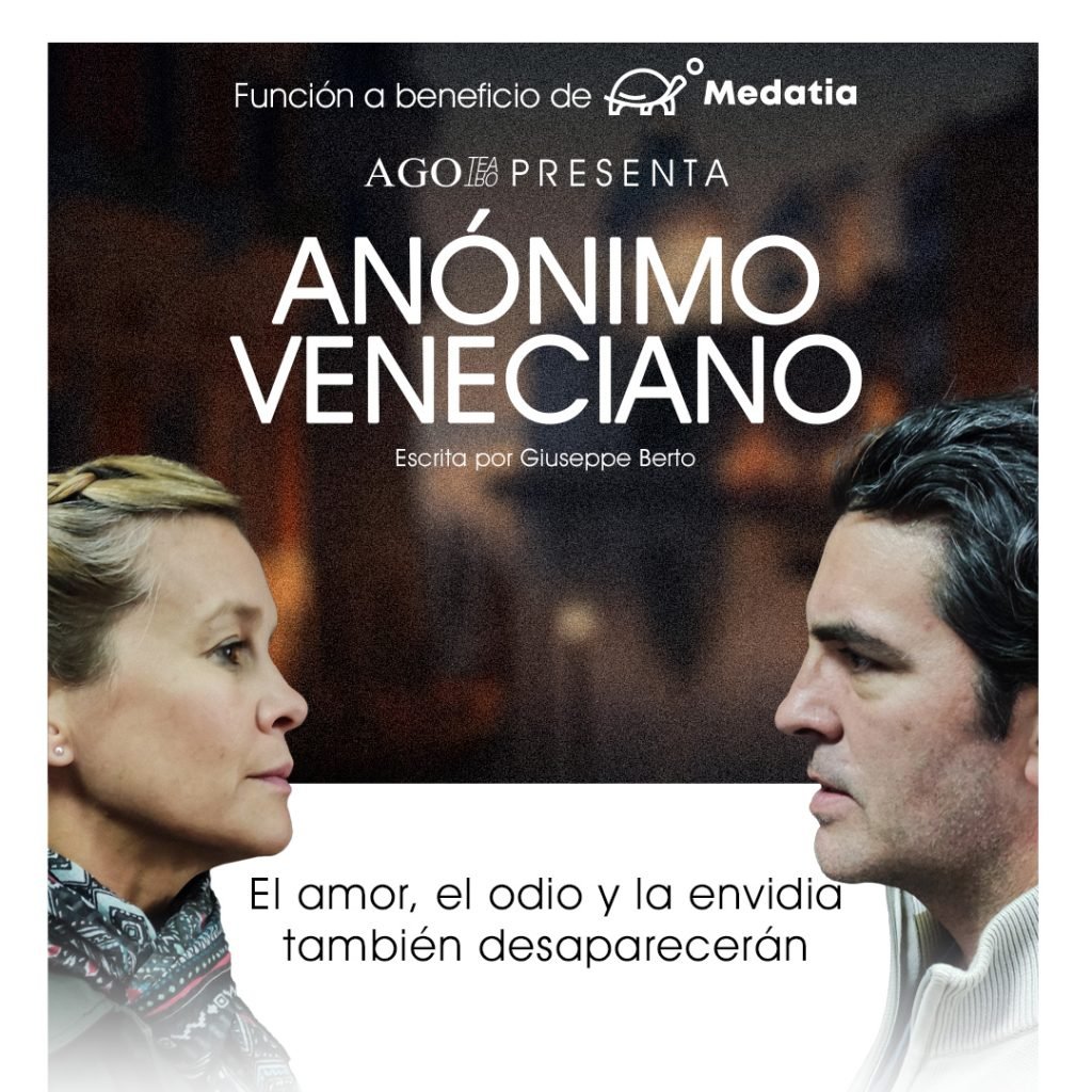 En efecto, el domingo, 1 de octubre tendrá lugar en la sala principal de la ACH la presentación de la pieza Anónimo Veneciano, de la agrupación AGO Teatro, con el propósito de recaudar fondos a beneficio de Medatia (Modelo Educativo para el Desarrollo de Aprendizajes a través del Teatro la Imaginación y las Artes), organización que a la fecha ha dictado más de 2.000 talleres para más de 55.000 participantes entre niños, adolescentes, trabajadores y personas de la tercera edad de comunidades necesitadas. Un esfuerzo cuya originalidad e impacto ha inspirado una veintena de trabajos académicos y dos libros sobre su modelo educativo.