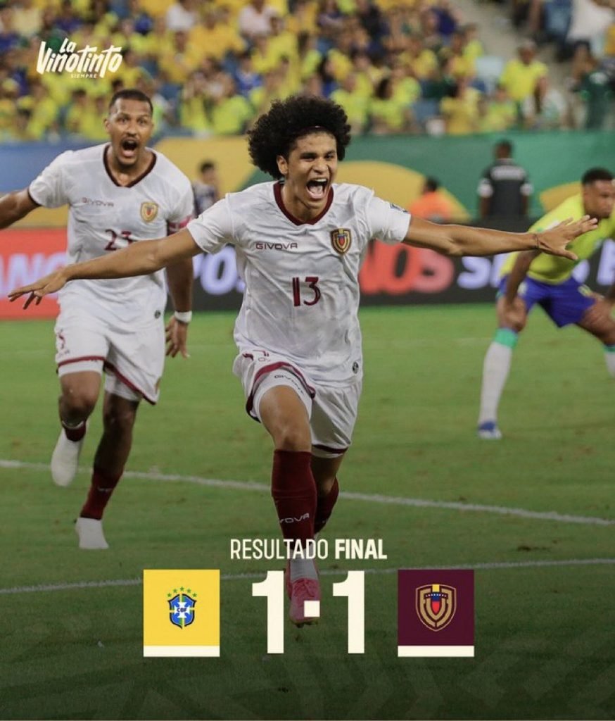 Finalmente sonó el pitazo que sentenció la culminación del encuentro, para Brasil fue una derrota acostumbrados a golear a La Vinotinto, para Venezuela este empate supo a victoria, porque hace soñar a sus jugadores y aficionados con llegar a clasificar para la próxima cita mundial de 2026.